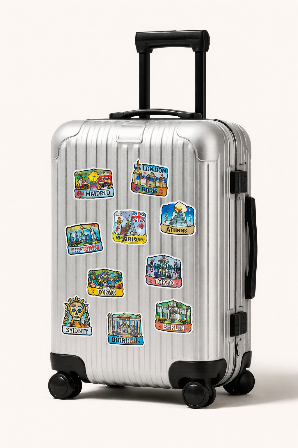 A collectible system translating global capitals into artist-designed stickers — created for travelers to collect across cities.